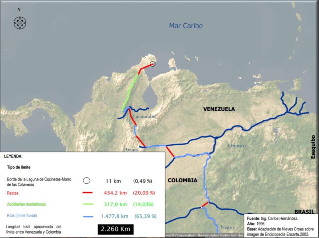 Imagen 1. Límite entre Venezuela y Colombia. Tipo y longitud estimada.