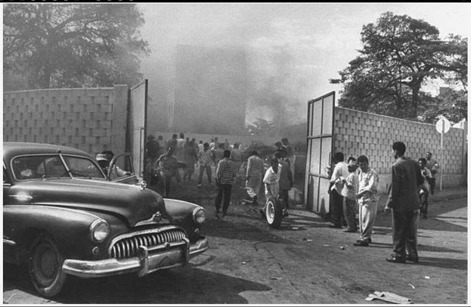 A raíz del golpe militar del 23 de enero de 1958, luego de que Pérez Jiménez huyó del país, una turba de militantes de Acción Democrática y del Partido Comunista de Venezuela tomaron por asalto la sede de la S.N. y procedieron a incendiarla, especialmente sus departamentos de archivos, los cuales fueron severamente destruidos.