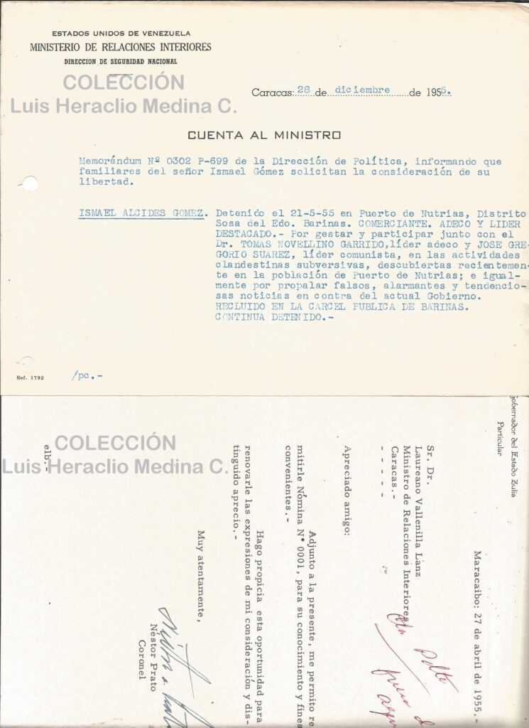 Ahora bien, pocos días antes del golpe de estado, Pedro Estrada, el director de la Seguridad Nacional, renunció al cargo y se fue del país. Pero tuvo la previsión de llevarse una especie de “seguro”: Estrada llevó consigo una enorme cantidad de copias de los archivos de la S.N. donde figuraban situaciones muy incómodas o comprometedoras para algunos dirigentes políticos. Si el gobierno trataba de extraditarlo a Venezuela para enjuiciarlo, Estrada daría publicidad a sus archivos y muchos colaboradores adecos y comunista quedarían al descubierto. Con esto aseguraba que no lo fueran a molestar el resto de su vida fuera de Venezuela, como efectivamente ocurrió. Pedro Estrada nunca fue perturbado y vivió tranquilamente en varias ciudades de Europa hasta su muerte. Muchos de los que figuraban en esos archivos tenían en los nuevos tiempos importantes cargos en la administración pública o en el congreso.