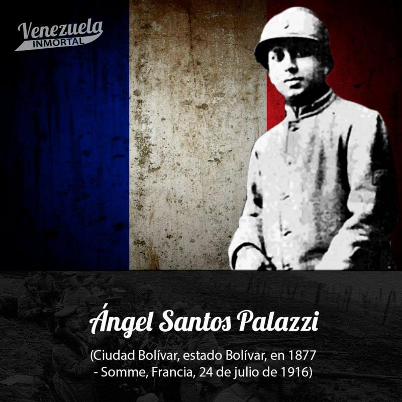 Hijo de un corso establecido en Ciudad Bolívar, Santos Palazzi junto con otros guayaneses hijos de franceses corsos, debieron ausentarse en 1914 para ir a pelear por la patria de sus padres en la Primera Guerra Mundial, siendo cabo del 273e Régiment d’Infanterie del ejercito francés.
